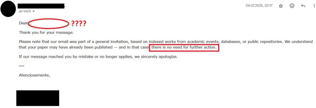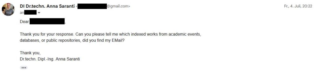Apparently, my EMail was found “based on indexed works from academic events, databases, or public repositories.” which are not mentioned concretely, regardless of how often I ask. Some have understood the ridiculousness of pointing to a deleted file.