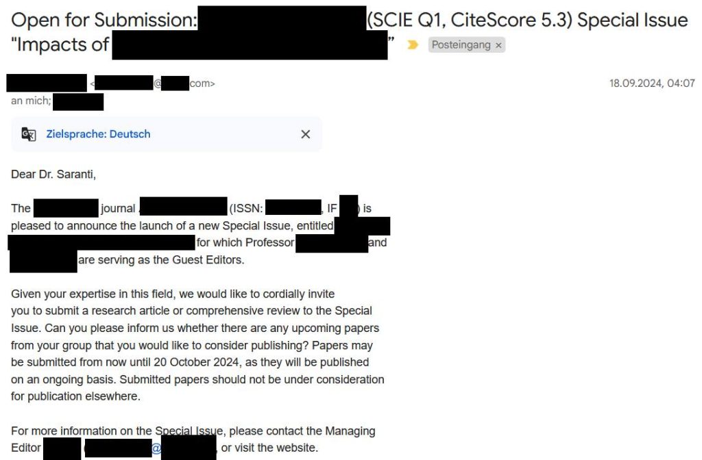 When I asked for more details about those scientific profiles or my supposed prior interaction with the platform, the answer was that the issue would be investigated. To this day (23.03.2025), there is no answer from the investigation.